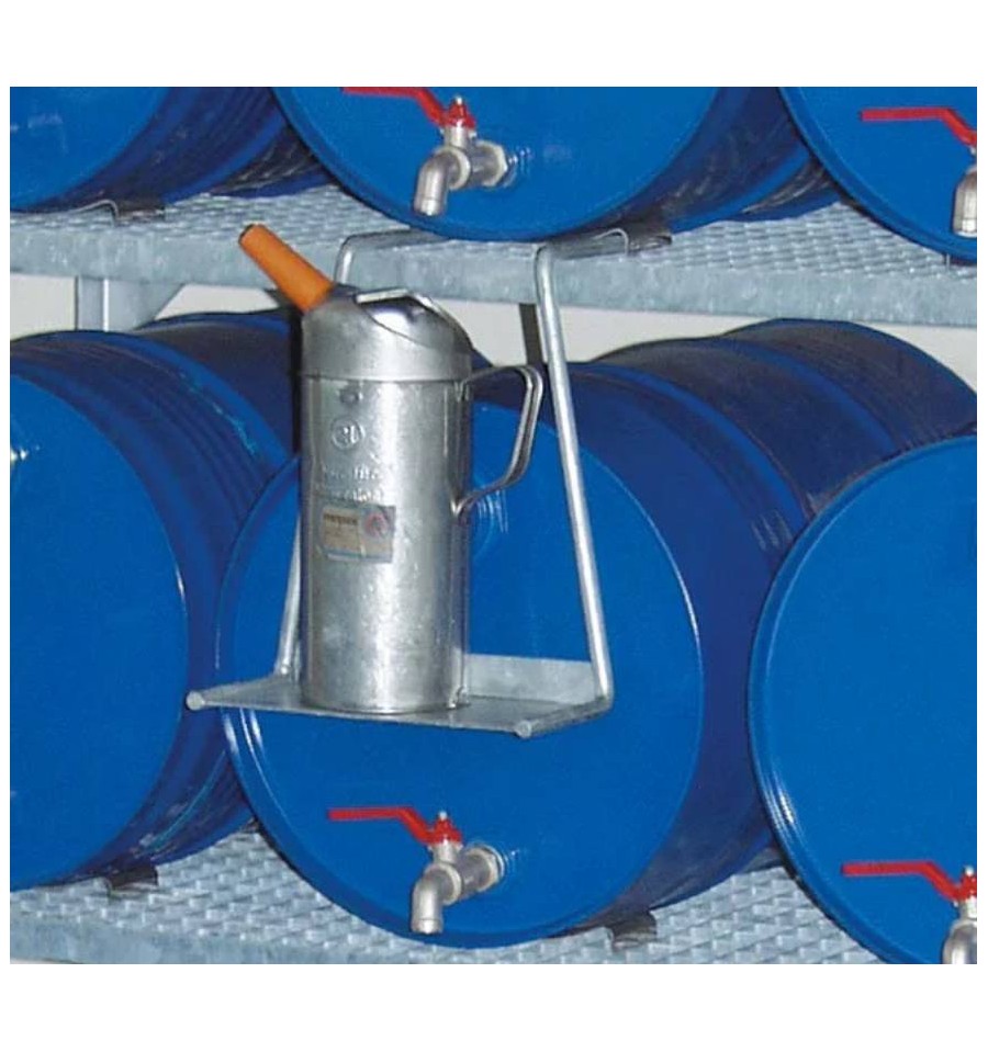 Uchwyt na kanister (Kannenträger) do regałów CEMO przeznaczony jest do stosowania w regałach do składowania beczek z wanną wychwytową. Stanowi element umożliwiający stabilne ustawienie kanistrów oraz wygodną obsługę podczas dozowania cieczy.