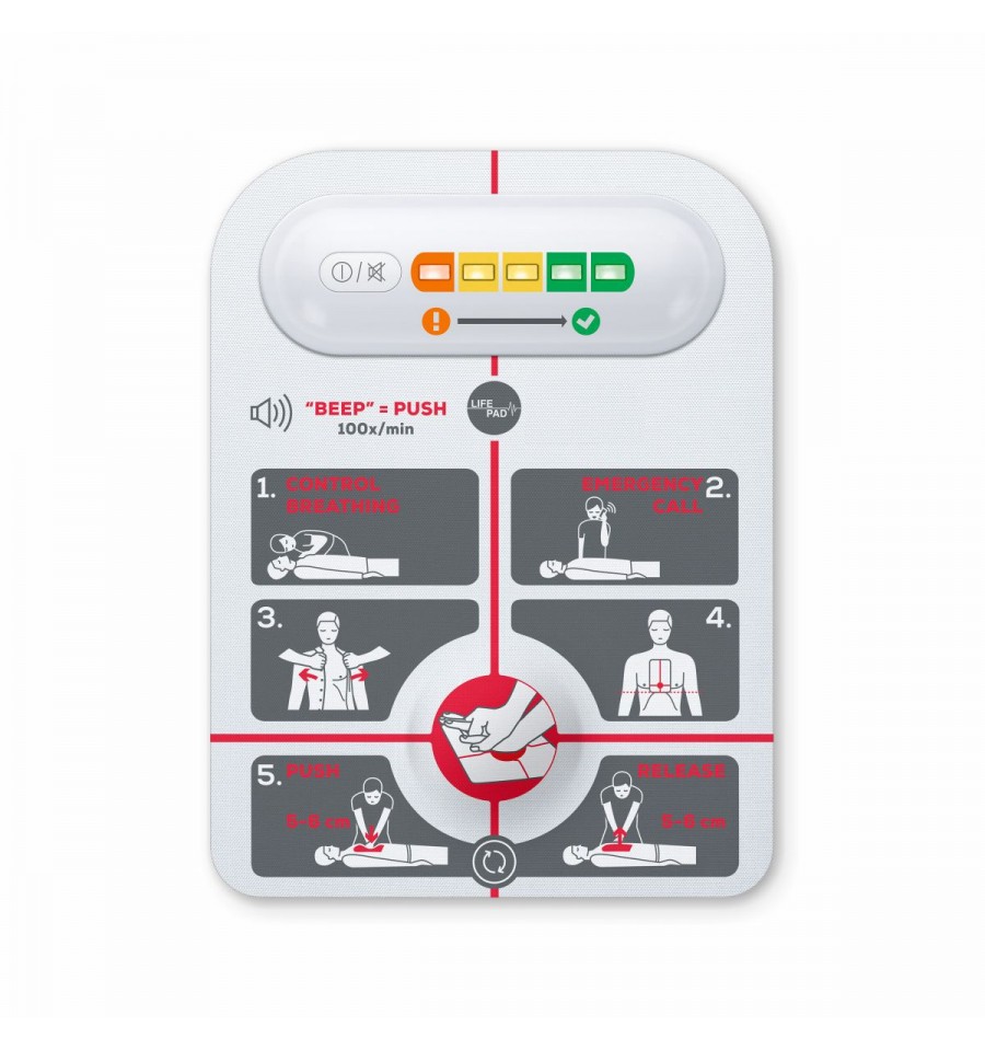 LifePad® umożliwia prawidłowe wykonanie resuscytacji krążeniowo-oddechowej dzięki wbudowanemu systemowi instrukcji wizualnych i akustycznych. Urządzenie prowadzi użytkownika krok po kroku przez proces RKO, wspomagając zachowanie odpowiedniego rytmu oraz głębokości ucisków.