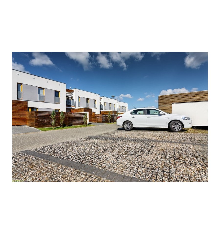 Eko kratka, o wysokości 4 cm, idealnie nadaje się do wypełnienia kruszywem, co szczególnie sprawdza się na parkingach i wjazdach na posesję