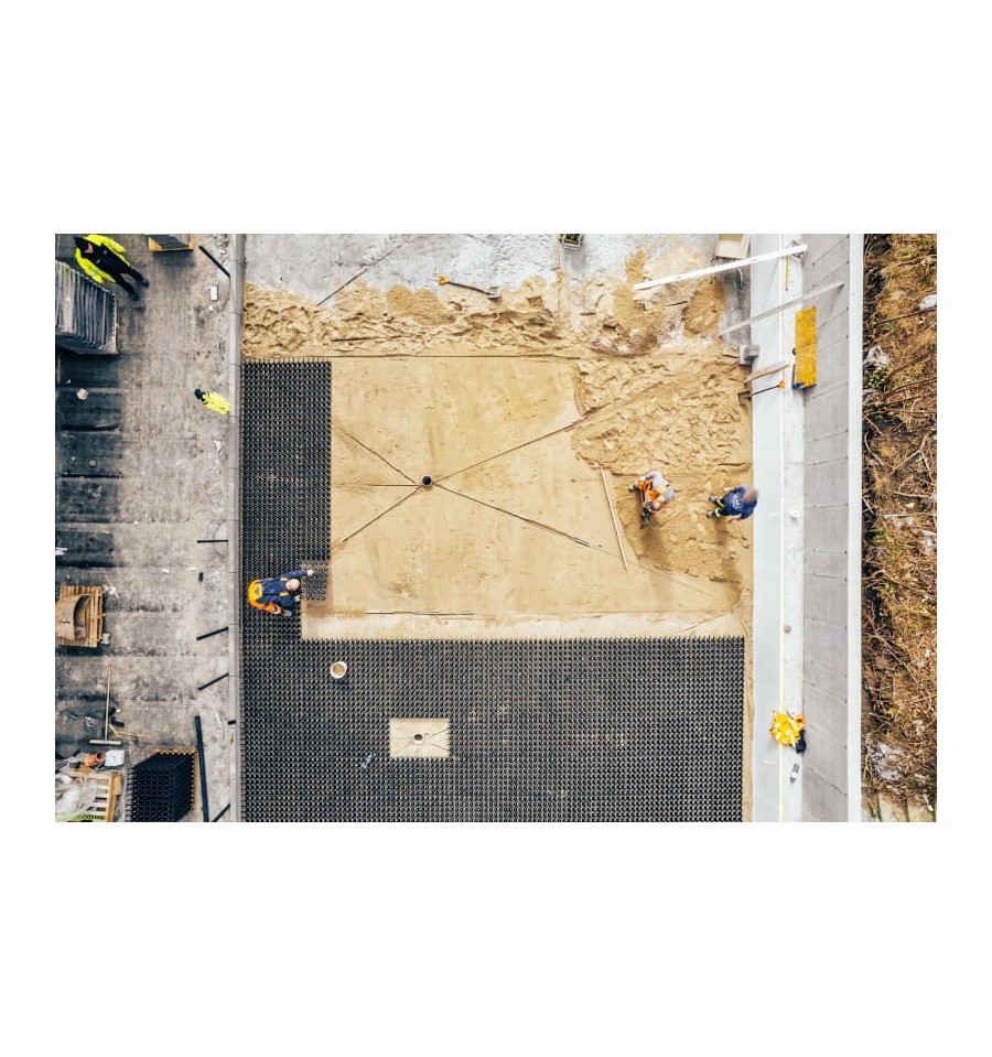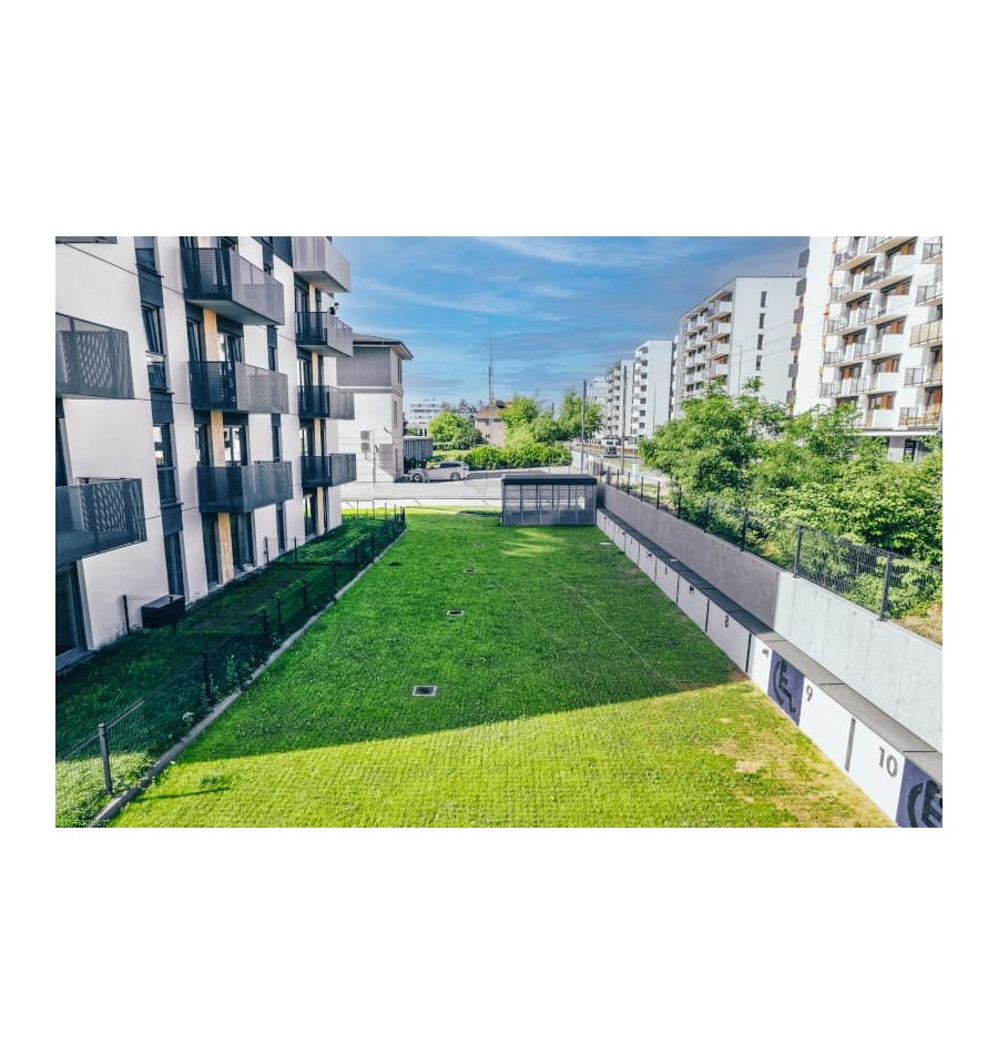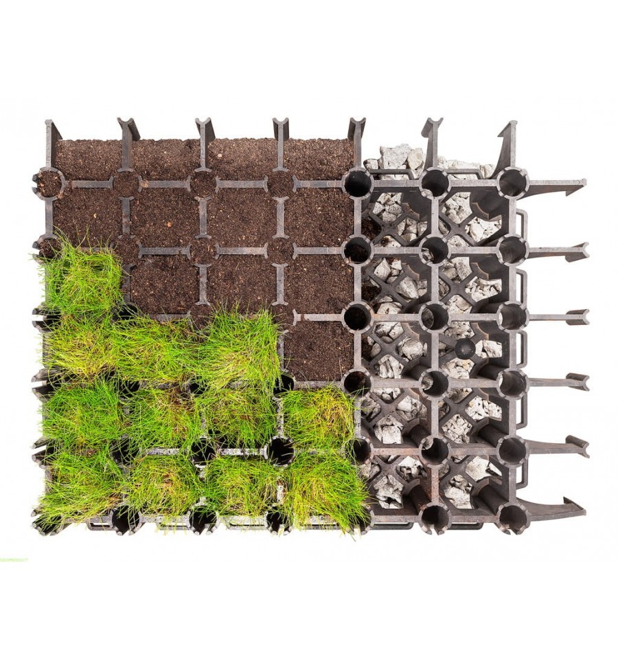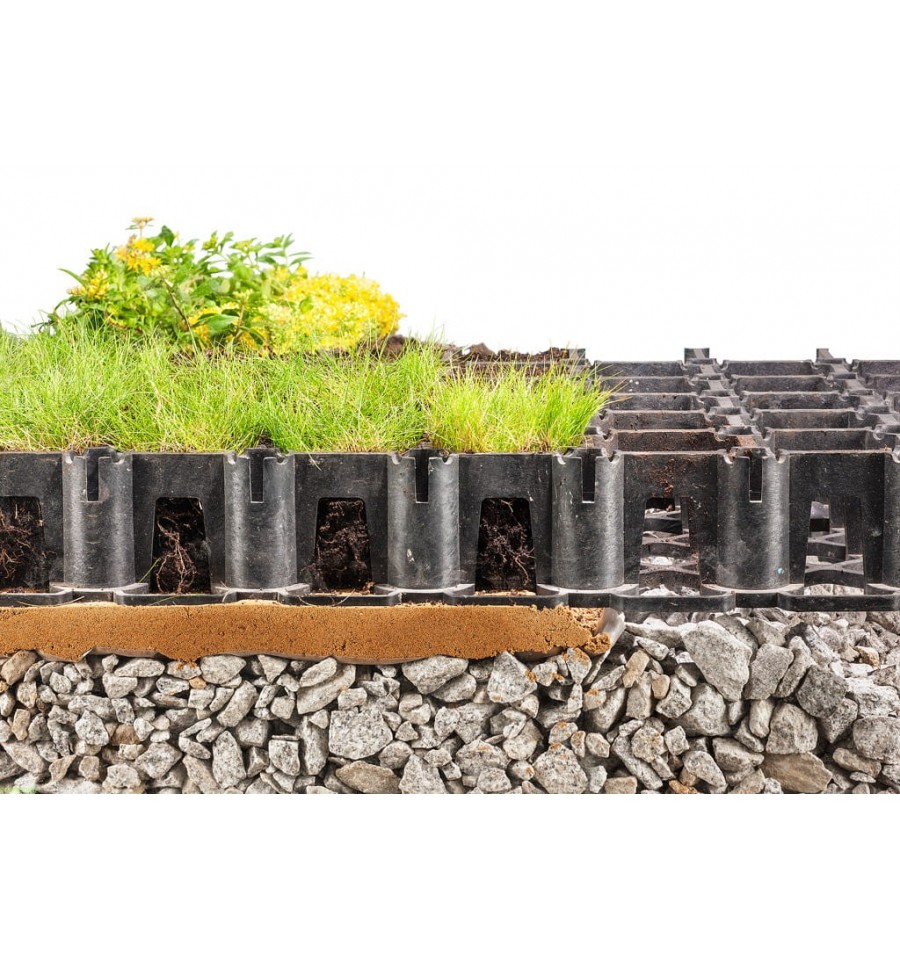 Kratka GREEN SYSTEM jest w szczególności dedykowana nawierzchniom stropodachów. Dzięki wysokości 10 cm, daje możliwość wzrostu i utrzymania trawy na zielonej drodze wewnętrznej, pożarowej czy parkingu, które są usytuowane na stropie - np. garażu podziemnego.