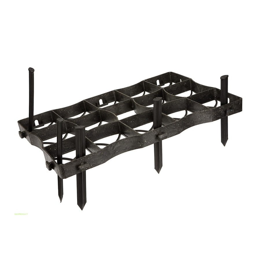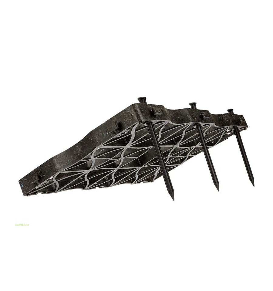 Kotwa znajduje szerokie zastosowanie: służy do montażu obrzeży geoBORD, mocowania krat geoSYSTEM S60s na skarpach i zboczach, a także do stabilizacji agrowłókniny i geowłókniny. Niewielka waga (0,03 kg) przy szerokości 3 cm i długości 24 cm sprawia, że jest wygodna w użyciu, a jednocześnie skuteczna w utrzymaniu elementów na właściwym miejscu.