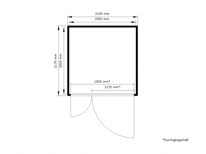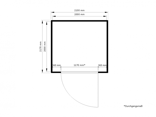 Kontener materiałowy MC 1200 bez podłogi, ocynkowany. Ma powierzchnię użytkową 2,1 m x 2,17 m i wysokość 2,115 m.