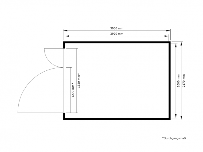 Kontener materiałowy MC 1300 bez podłogi, ocynkowany. Ma powierzchnię użytkową 3,05 m x 2,17 m i wysokość 2,115 m.