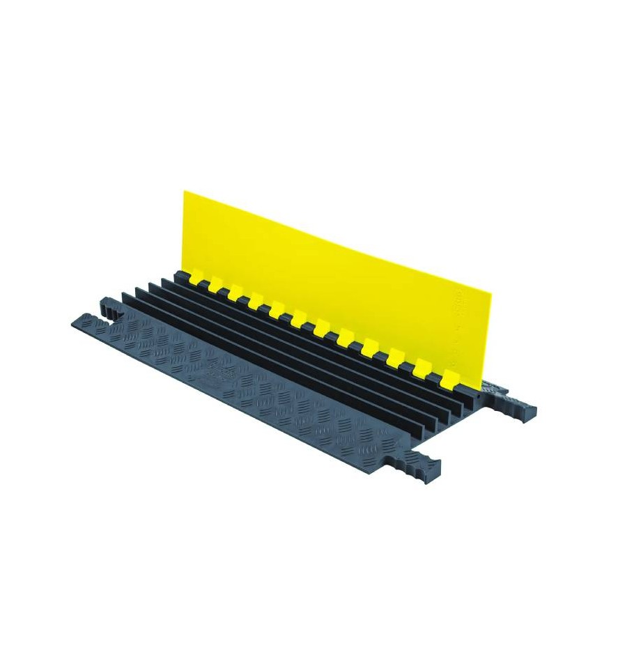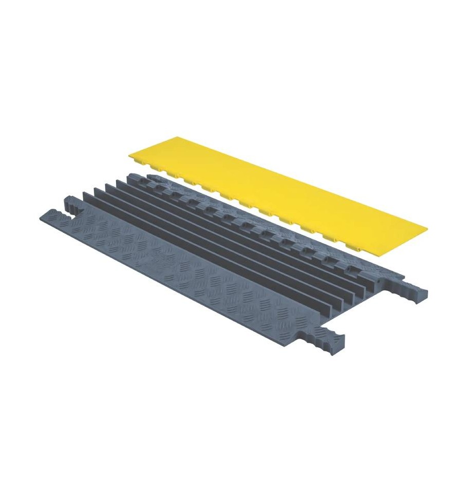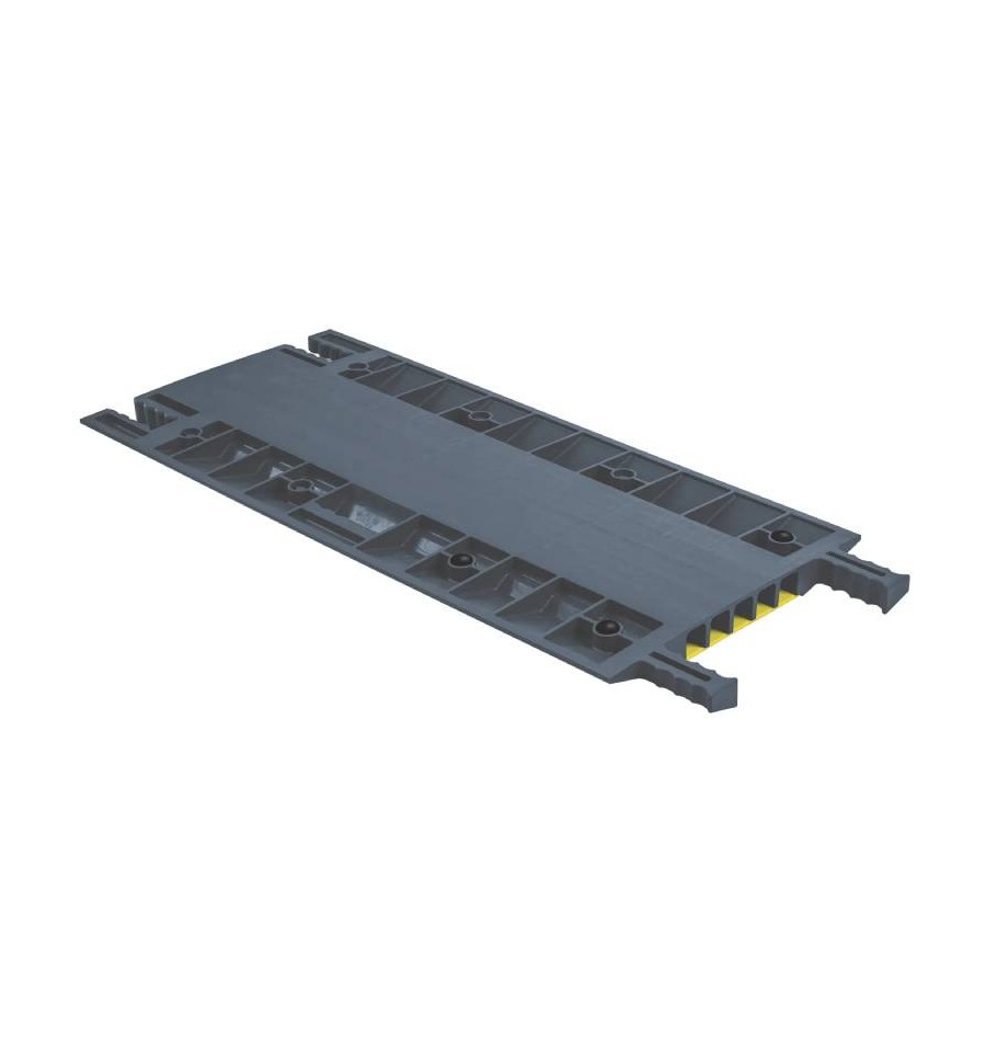 Osłona kabli Grip Guard® 5-Channel została zaprojektowana, aby tworzyć bezpieczne i stabilne przejścia nad przewodami w miejscach o dużym natężeniu ruchu. Dzięki modułowej konstrukcji kilka elementów można łatwo ze sobą połączyć, tworząc trwałą i bezpieczną osłonę chroniącą kable przed uszkodzeniem, a pieszym i pojazdom zapewniając wygodne i bezpieczne przejście. Świetnie sprawdza się w obiektach rozrywkowych, komercyjnych oraz użyteczności publicznej, gdzie przewody muszą być prowadzone tymczasowo po powierzchni. Lekka i ergonomiczna budowa ułatwia szybki montaż, transport oraz obsługę, jednocześnie gwarantując solidną ochronę kabli.