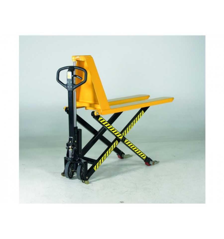 Ręczny wózek podnośnikowy nożycowy z teleskopowym cylindrem.