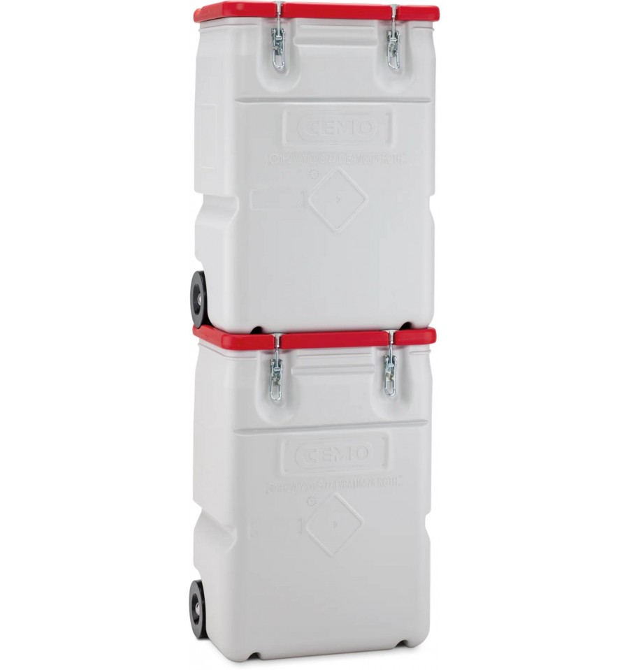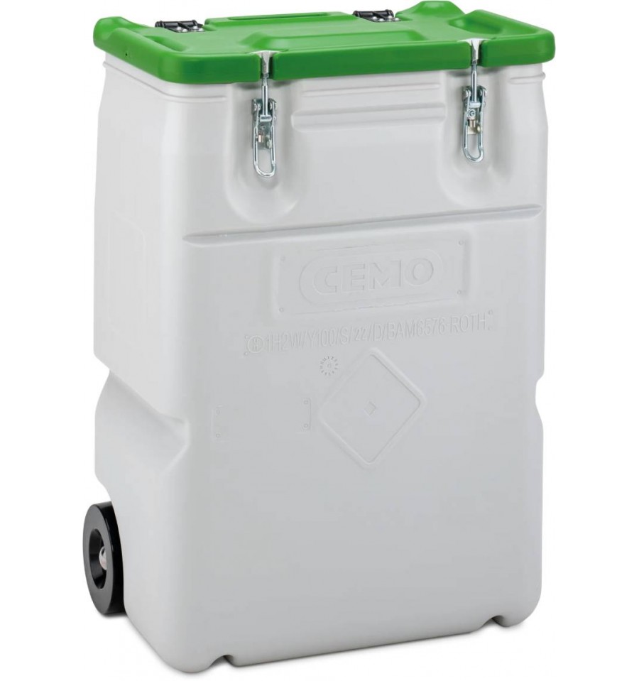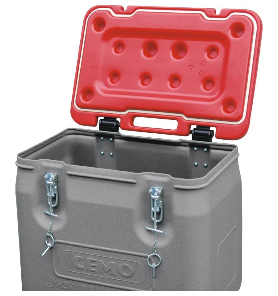 Mobilbox marki CEMO to solidny pojemnik przeznaczony do bezpiecznego przechowywania oraz transportu niebezpiecznych materiałów stałych należących do grup pakowania II i III. Konstrukcja dopuszczona jest do transportu zgodnie z ADR, RID oraz IMDG Code, dzięki czemu sprawdza się w zastosowaniach przemysłowych, komunalnych oraz warsztatowych. Pojemnik może być wykorzystywany jako kontener na odpady, materiały sorpcyjne, czyściwa, pozostałości farb oraz substancje łatwopalne i zanieczyszczające środowisko.