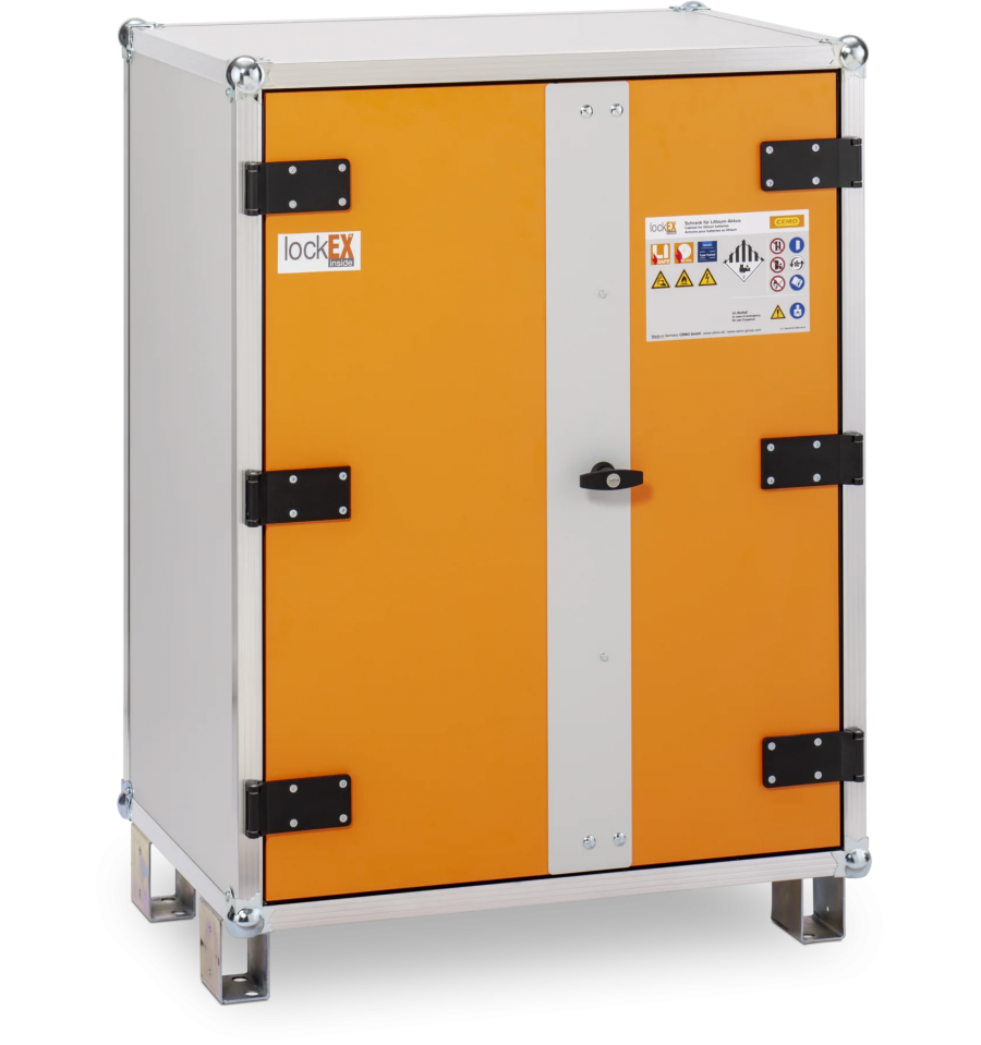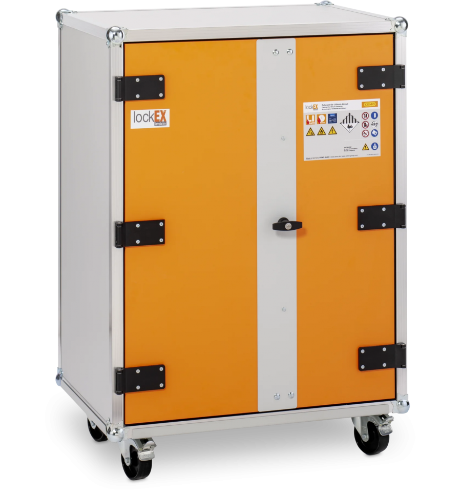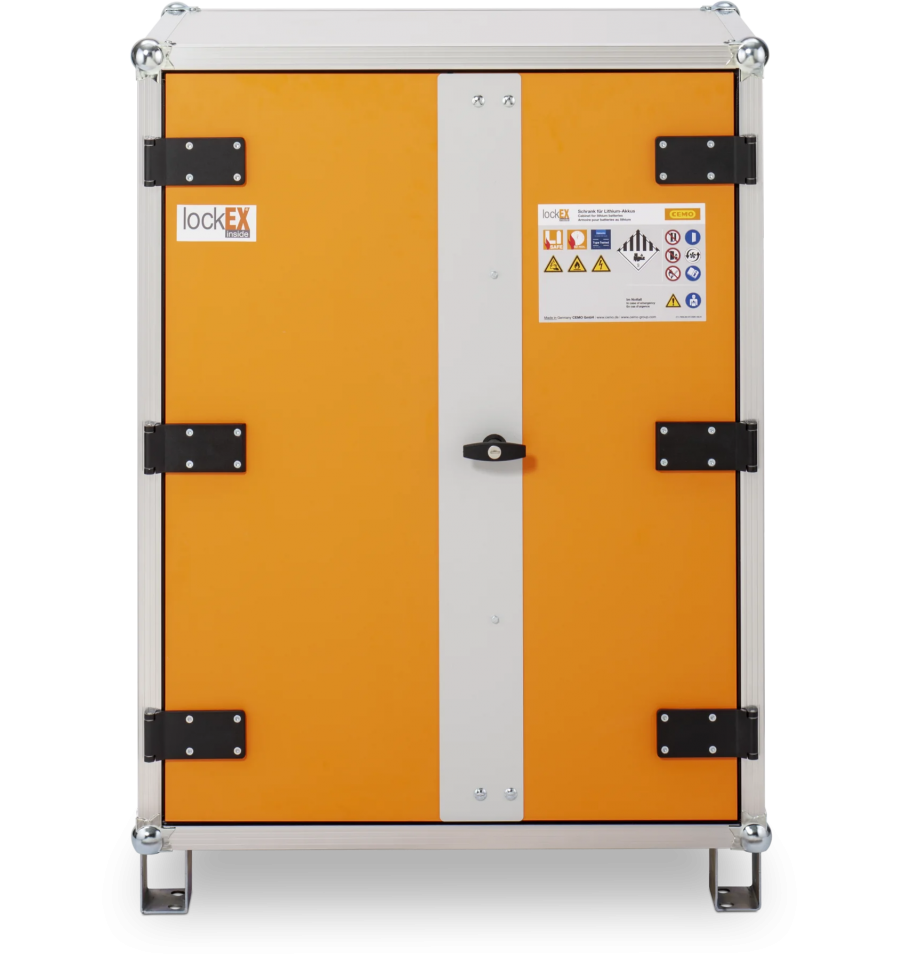 Szafa na akumulatory CEMO 8/10 lockEX została stworzona z myślą o bezpiecznym magazynowaniu akumulatorów litowo-jonowych, zgodnie z najnowszymi wymogami bezpieczeństwa. Zastosowany w niej opatentowany system lockEX umożliwia kontrolowane uwolnienie ciśnienia w razie eksplozji, co chroni konstrukcję szafy i ogranicza ryzyko pożaru.