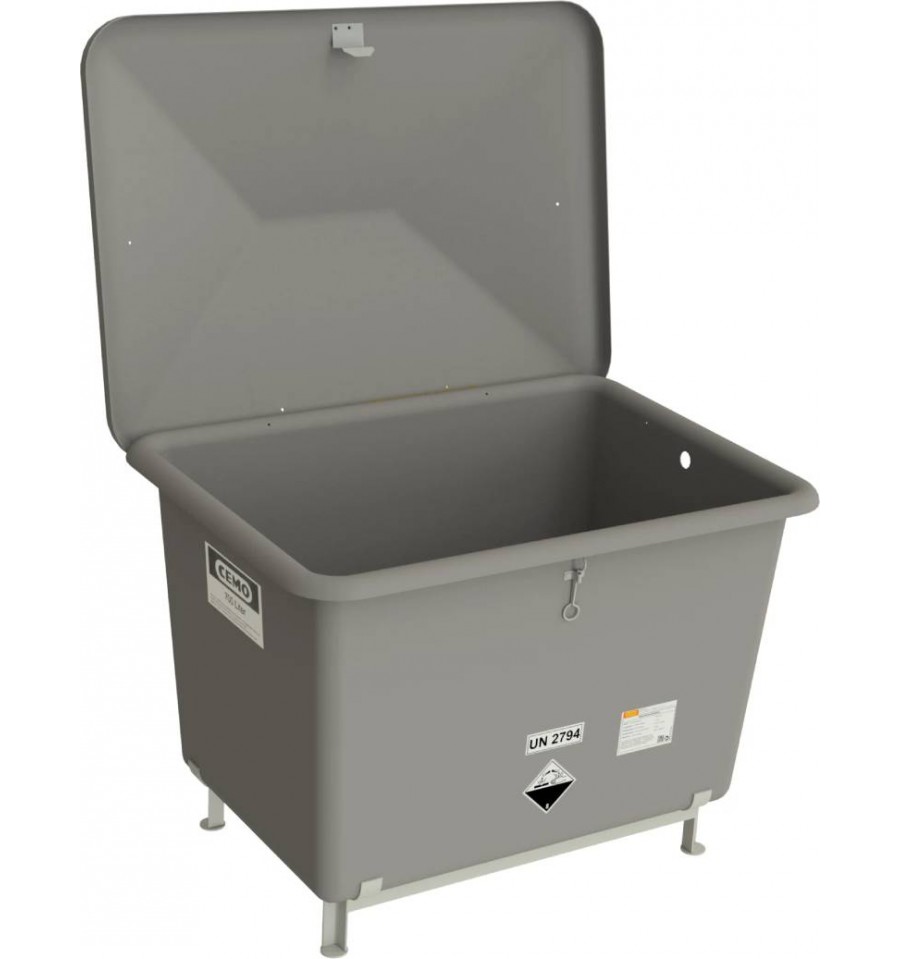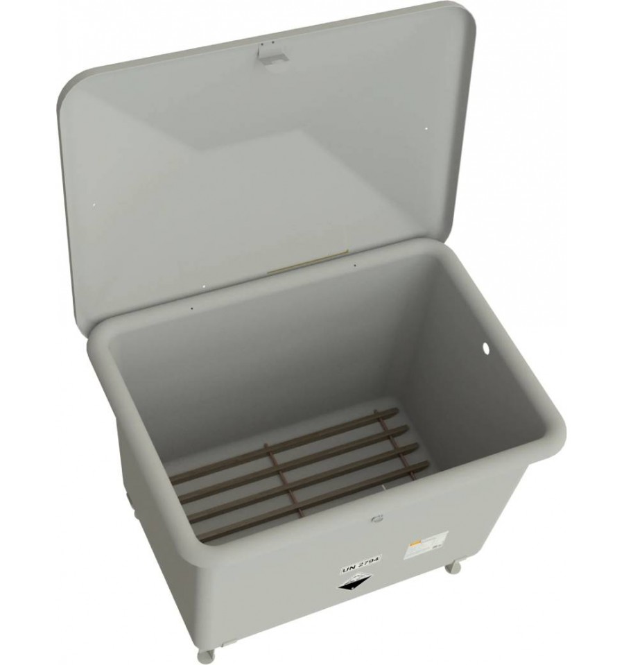 Wykonany z wytrzymałego tworzywa wzmacnianego włóknem szklanym (GFK) pojemnik przeznaczony jest do bezpiecznego magazynowania zużytych akumulatorów samochodowych. Zaprojektowany został z myślą o przechowywaniu oraz transporcie baterii zgodnie z obowiązującymi przepisami ADR 4.1.4.1 P801a. Dzięki solidnej konstrukcji zapewnia czyste i bezpieczne warunki składowania oraz chroni otoczenie przed wyciekiem niebezpiecznych substancji.