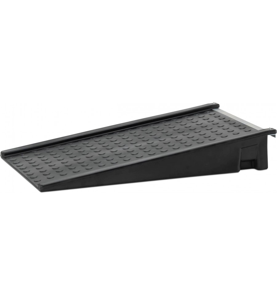 Rampa najazdowa wykonana z wysokiej jakości polietylenu (PE), charakteryzującego się bardzo wysoką odpornością chemiczną oraz trwałością. Konstrukcja zapewnia stabilność i bezpieczeństwo podczas użytkowania, a niewielkie nachylenie ułatwia wprowadzanie i wyprowadzanie ładunków.