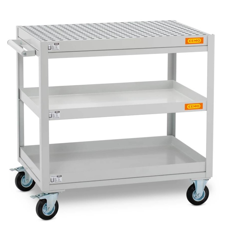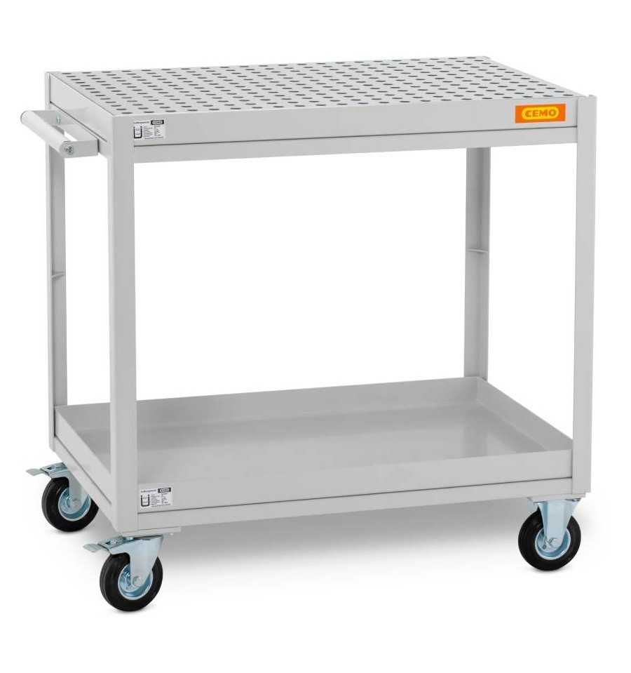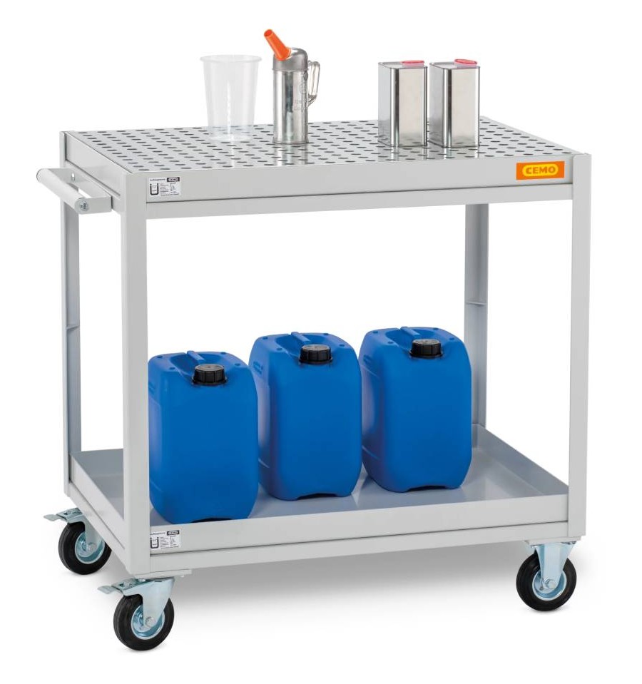 Mobilny wózek warsztatowy CEMO to solidna, stalowa konstrukcja przeznaczona do użytkowania wewnątrz pomieszczeń w warsztatach, strefach serwisowych oraz obszarach magazynowych. Wózek został zaprojektowany jako mobilna stacja robocza do bezpiecznego przechowywania, transportu oraz dozowania substancji ciekłych i materiałów niebezpiecznych dla środowiska. Doskonale sprawdza się w miejscach, gdzie wymagane jest zgodne z przepisami składowanie olejów, chemikaliów i płynów eksploatacyjnych.