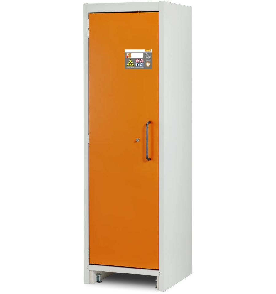 Szafa bezpieczeństwa CEMO PROline 6/20 Typ 90 została zaprojektowana do profesjonalnego i bezpiecznego przechowywania łatwopalnych lub niebezpiecznych substancji w środowisku przemysłowym lub laboratoryjnym. Konstrukcja spełnia wymagania DIN EN 14470-1, co gwarantuje odporność ogniową na poziomie 90 minut, potwierdzoną testami.