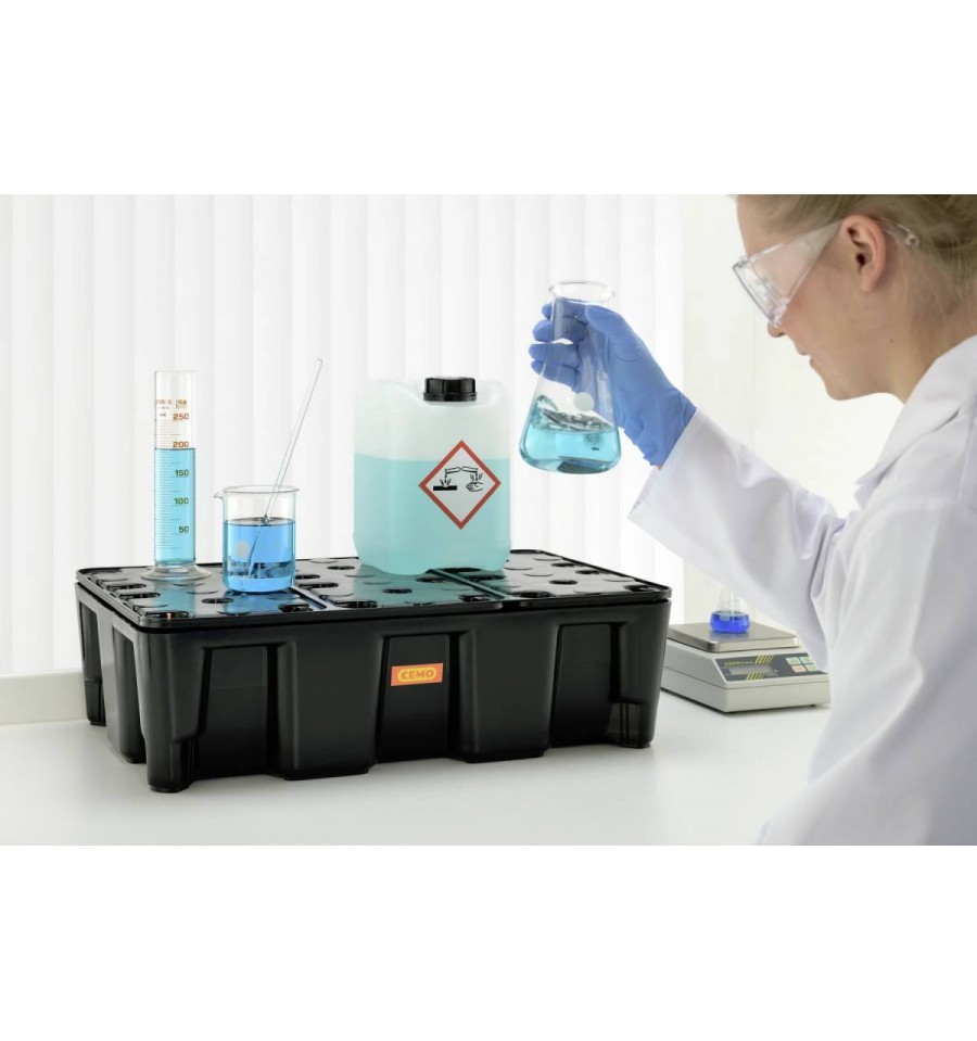 Wanna wychwytowa CEMO stanowi solidne i bezpieczne rozwiązanie do składowania małych pojemników z cieczami niebezpiecznymi w magazynach, warsztatach, laboratoriach oraz zakładach przemysłowych. Dzięki odporności chemicznej oraz niskiej masie własnej jest wygodnym i trwałym elementem wyposażenia stanowisk roboczych.