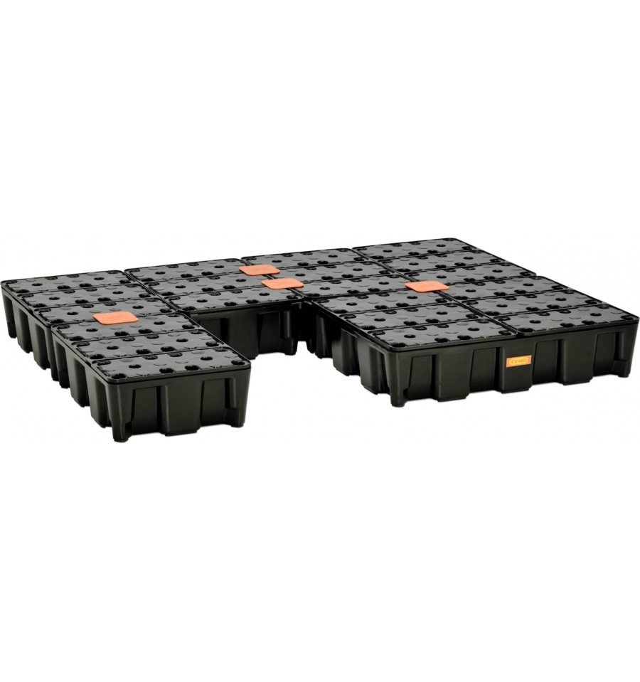 Polietylenowa wanna wychwytowa o pojemności 1100 l i udźwigu 2000 kg przeznaczona do przechowywania kontenera IBC/KTC z substancjami szkodliwymi dla środowiska (oleje, rozpuszczalniki i inne niebezpieczne chemikalia, włącznie z substancjami najbardziej agresywnymi). Paleta posiada Certyfikat DIBt Z-40.22-398 3 LATA GWARANCJI!