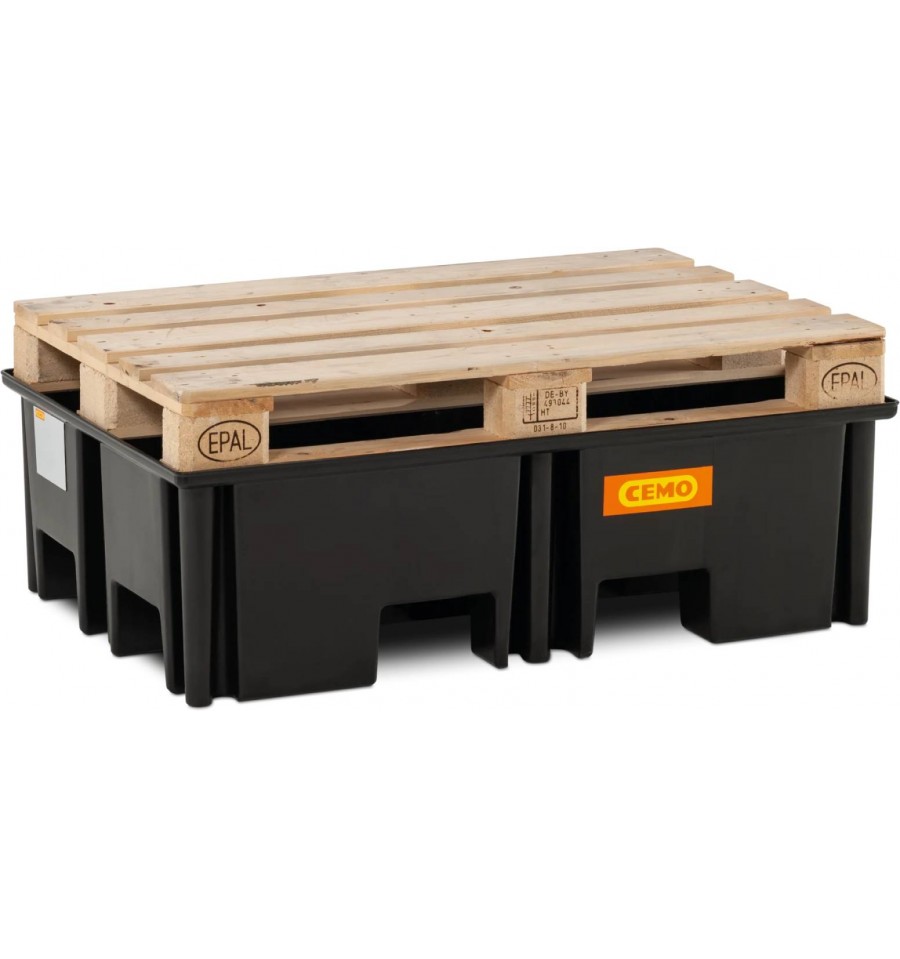 Wanna wychwytowa z polietylenu (PE), kompatybilna z paletą euro (120 × 80 cm). Wykonana z wysokiej jakości PE, co zapewnia wysoką odporność chemiczną oraz możliwość bezpośredniego ustawienia na posadzce. Dzięki zintegrowanym kieszeniom widłowym (forklift pockets) można ją obsługiwać wózkiem widłowym z czterech stron (z wyjątkiem sytuacji dwóch palet ustawionych obok siebie).