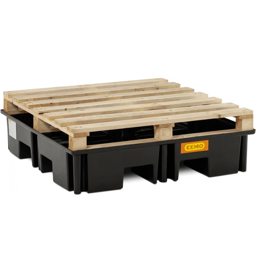 Wanna wychwytowa z polietylenu (PE), kompatybilna z paletą euro (120 × 120 cm). Wykonana z wysokiej jakości PE, co zapewnia wysoką odporność chemiczną oraz możliwość bezpośredniego ustawienia na posadzce. Dzięki zintegrowanym kieszeniom widłowym (forklift pockets) można ją obsługiwać wózkiem widłowym z czterech stron (z wyjątkiem sytuacji dwóch palet ustawionych obok siebie).