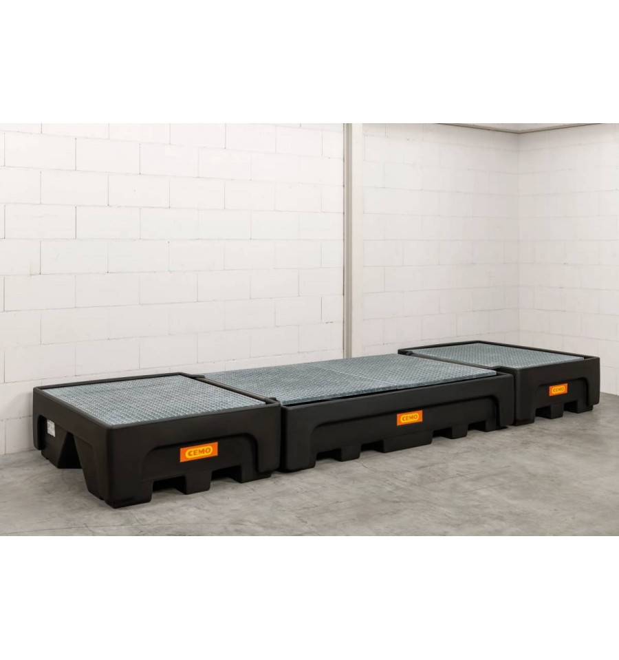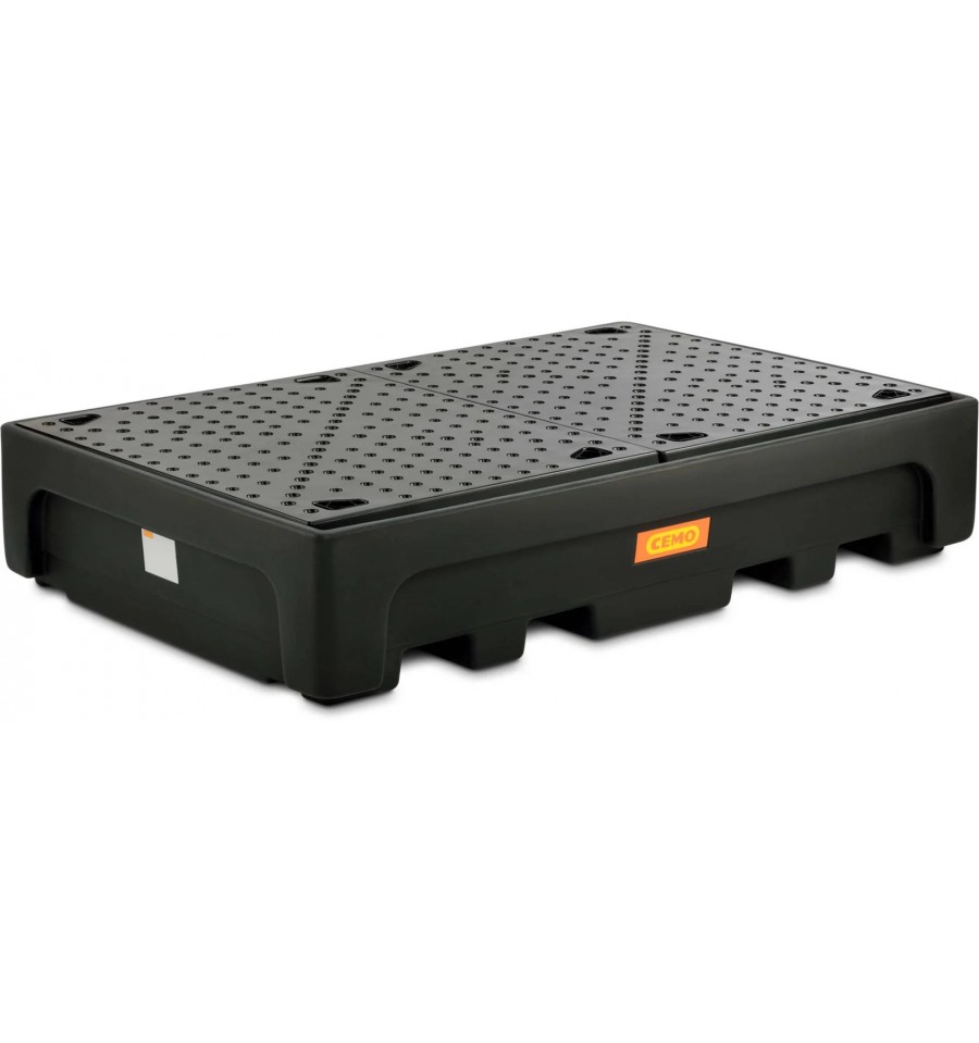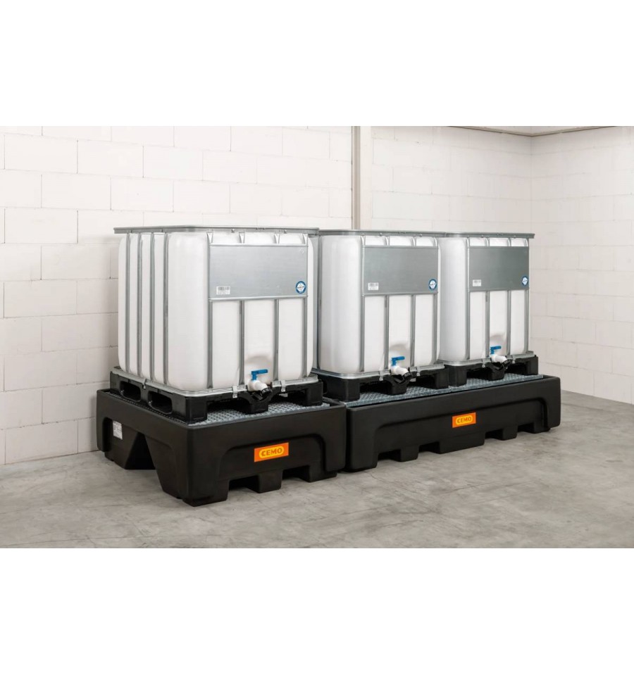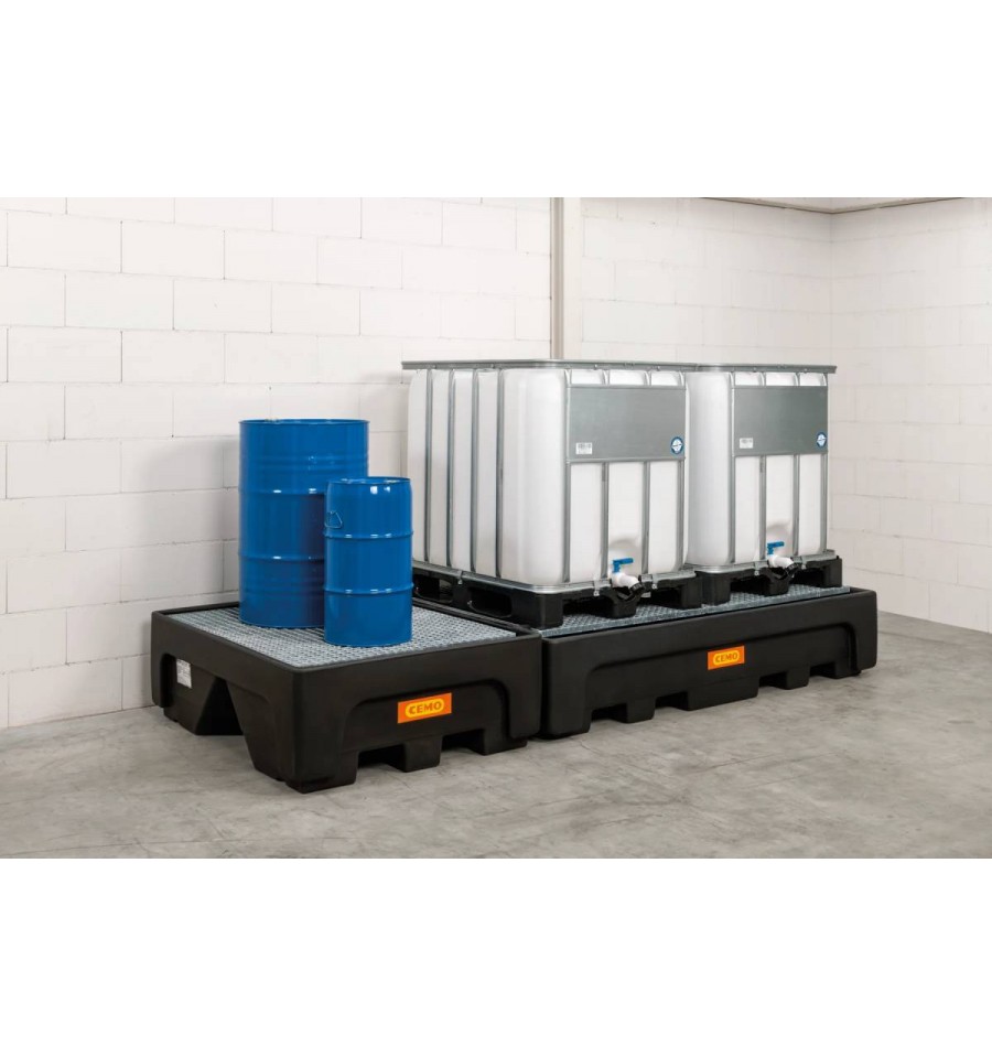 Dostępna w trzech wariantach: z poprzeczką wsporczą, kratownicą ocynkowaną lub perforowaną płytą PE. Przeznaczona do użytkowania wewnątrz pomieszczeń, idealna do ustawiania dwóch pojemników IBC w magazynach i zakładach przemysłowych. Wanny można łączyć obok siebie.