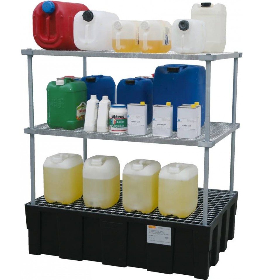 Jednostka podstawowa CEMO Kanister-Regalsystem połączona z wanną wychwytową PE ze stalową kratownicą to przemyślane i kompletne rozwiązanie do magazynowania kanistrów i beczek: stalowy stelaż regału stabilnie wspiera pojemniki, a wanna wychwytowa zbiera ewentualne wycieki, gwarantując bezpieczeństwo i ochronę przed zanieczyszczeniem. Całość jest odporna chemicznie, co pozwala na przechowywanie różnych substancji przemysłowych, a konstrukcja zapewnia oszczędność miejsca i przejrzysty układ magazynu. System ten łączy wytrzymałość, funkcjonalność i bezpieczeństwo, stanowiąc praktyczne wyposażenie warsztatów, magazynów czy zakładów – wszystko w jednym, gotowym do montażu zestawie.