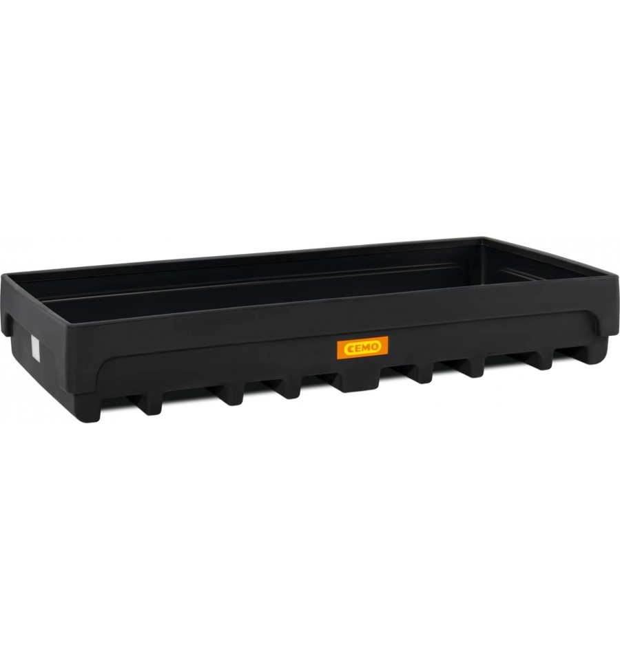 Wanna wychwytowa CEMO przeznaczona jest do magazynowania palet z substancjami ciekłymi niebezpiecznymi dla wody i środowiska. Może być ustawiana bezpośrednio na posadzce, bez konieczności stosowania dodatkowej konstrukcji nośnej. Zintegrowane kieszenie na widły wózka widłowego ułatwiają załadunek palet lub pojemników IBC do regałów magazynowych.