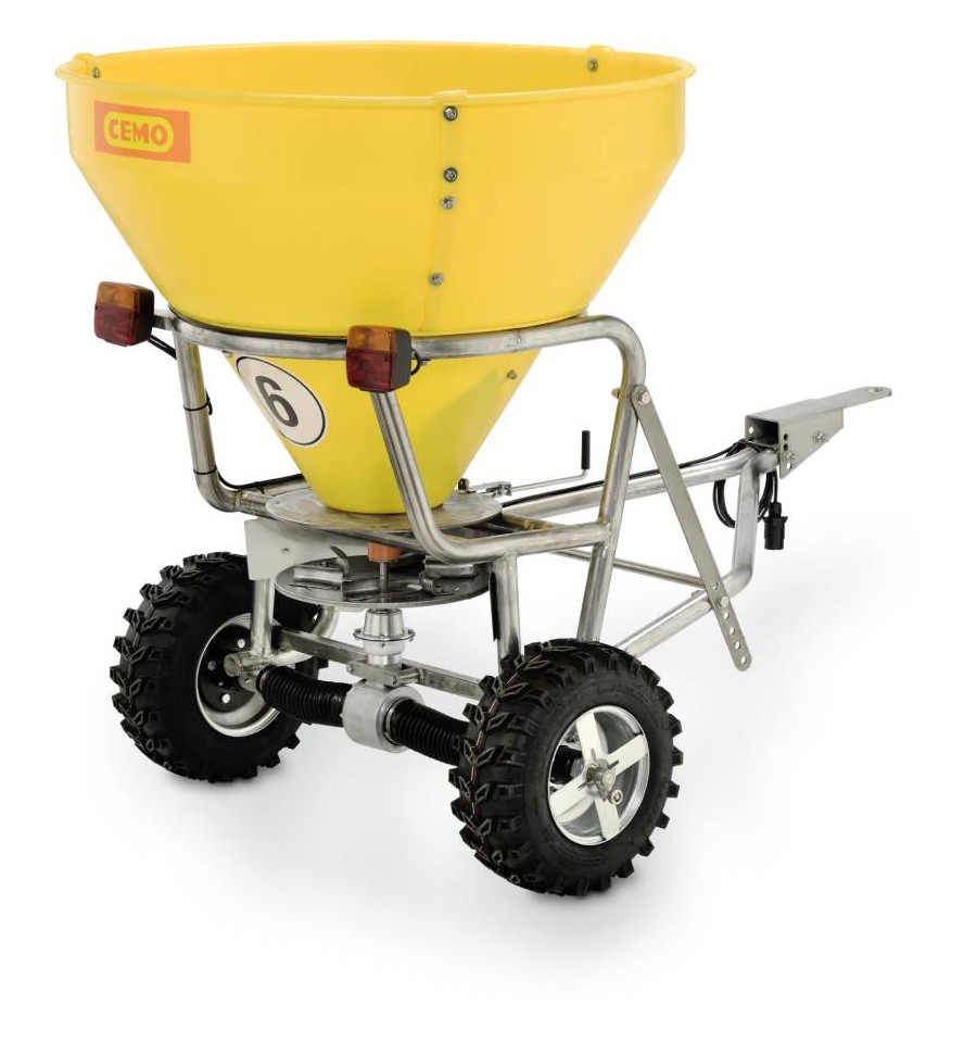 CEMO SW 300 to wyjątkowo pojemny i solidny wózek do rozsypywania soli, piasku oraz innych materiałów sypkich na dużych powierzchniach, przeznaczony zarówno do zastosowań prywatnych, jak i profesjonalnych. Duży, 300-litrowy pojemnik z wytrzymałego tworzywa PE, stabilna stalowa rama malowana proszkowo oraz pneumatyczne gumowe koła z zimowym bieżnikiem zapewniają wydajną i bezawaryjną pracę nawet w trudnych warunkach zimowych. Wózek może być stosowany również przez cały rok — np. do nawozów ogrodniczych lub innych materiałów sypkich. Trwała aluminiowa przekładnia z możliwością odłączenia, wygodna regulacja uchwytu oraz 10-stopniowa kontrola ilości rozsiewu pozwalają precyzyjnie dostosować działanie do rodzaju materiału. Model SW 300 wyróżnia się też łatwą obsługą i dostawą w formie wstępnie zmontowanych modułów, co przyspiesza przygotowanie do pracy.