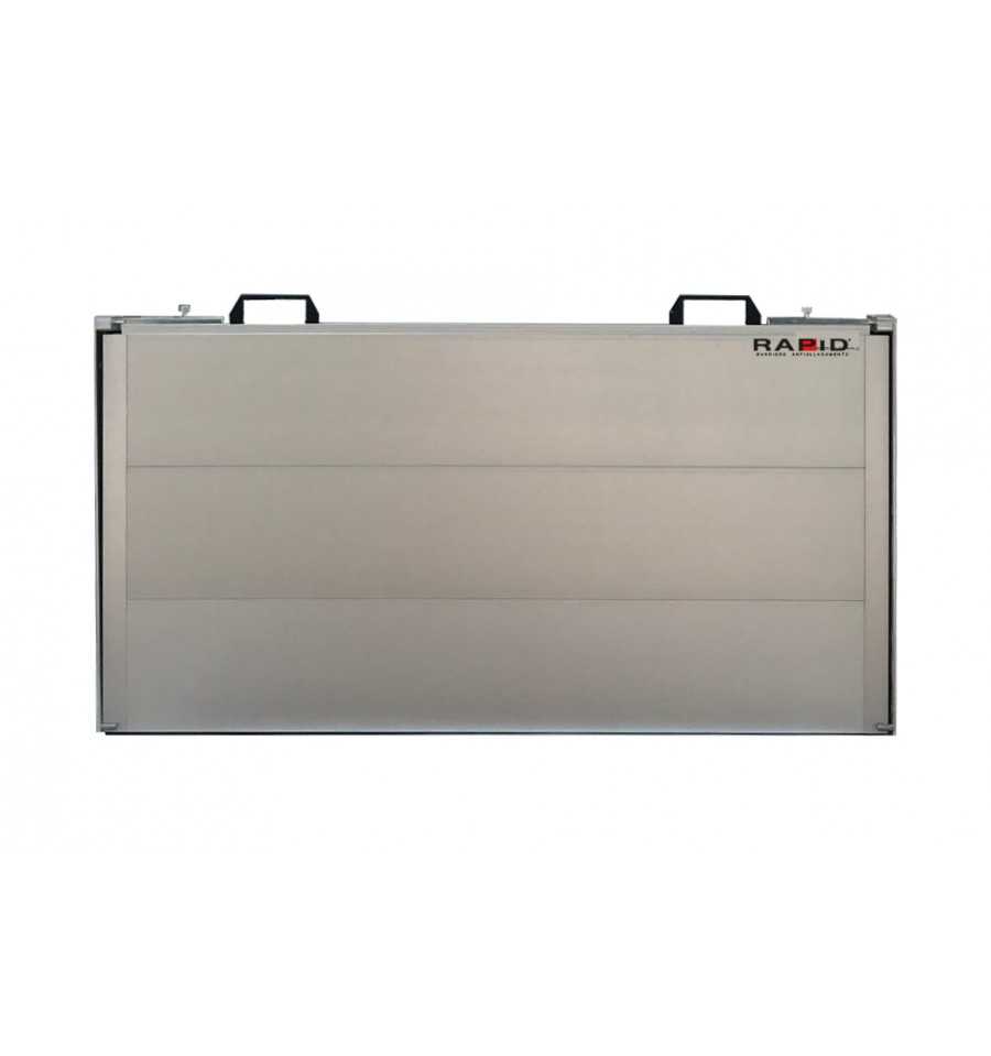 Barierę przeciwpowodziową Click Rapid można szybko zamontować między dwiema wystającymi ramami w przedziale, zarówno wewnątrz, jak i na zewnątrz, i wymaga bardzo mało miejsca. System zatrzasków utrzymuje go na swoim miejscu, w pionie, nawet w przypadku wzburzonej wody, zawirowań lub przepływów. Bariera CLICK RAPID wykonana jest z anodowanego aluminium, a jej gładka powierzchnia jest łatwa do czyszczenia po użyciu.